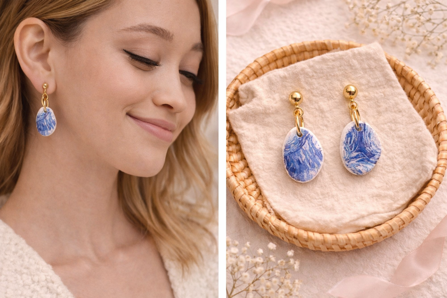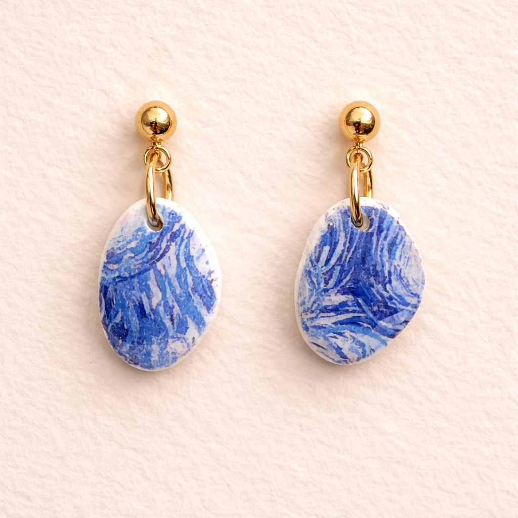 Tiny studs, big personality. These blue sketch-style cuties are perfect for everyday wear when you want something small, artsy, and quietly irresistible.