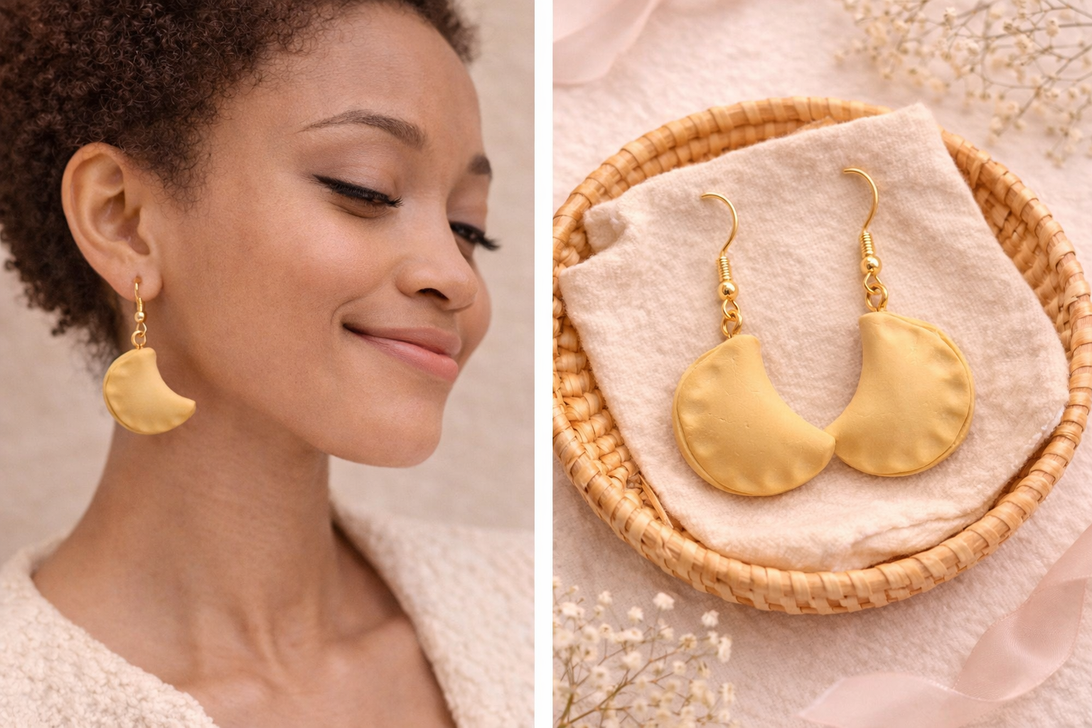 These golden crescents bring major heart-eyes energy. With soft texture and playful curves, they feel like sunshine for your ears… and yes, they know they’re cute.